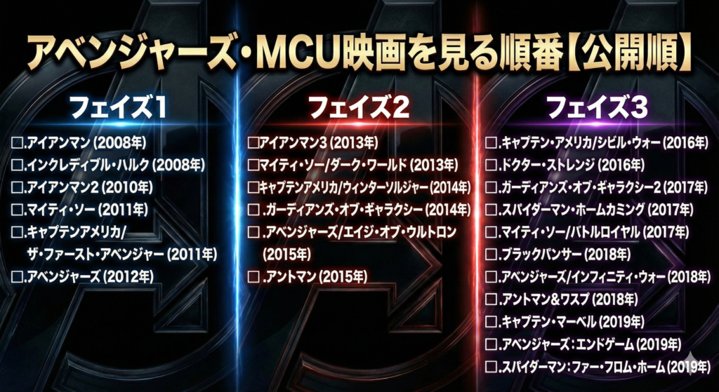 【公開順】アベンジャーズ・マーベル映画を見る順番リスト